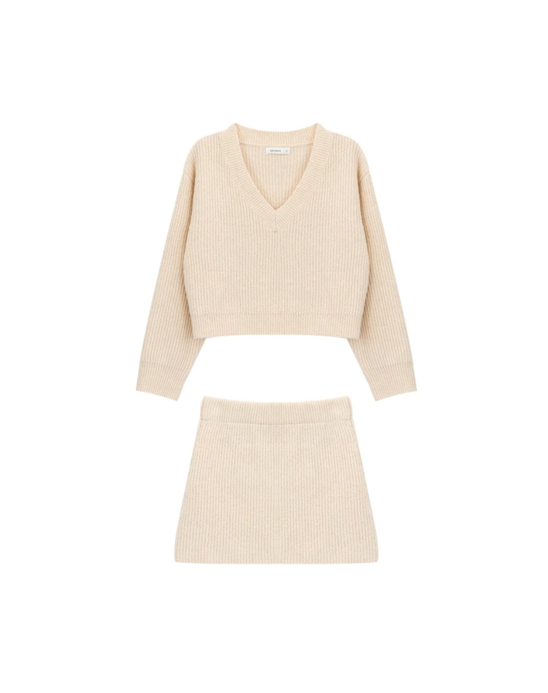 This V-neck knit set highlights the face with a flattering neckline and a cropped top that subtly reveals the waist, adding a confident winter allure. Paired with a fitted knit skirt, it smooths and defines the lower-body silhouette for a refined finish. When you’re unsure what to wear, this coordinated set makes it easy to achieve a polished, put-together look in one step.