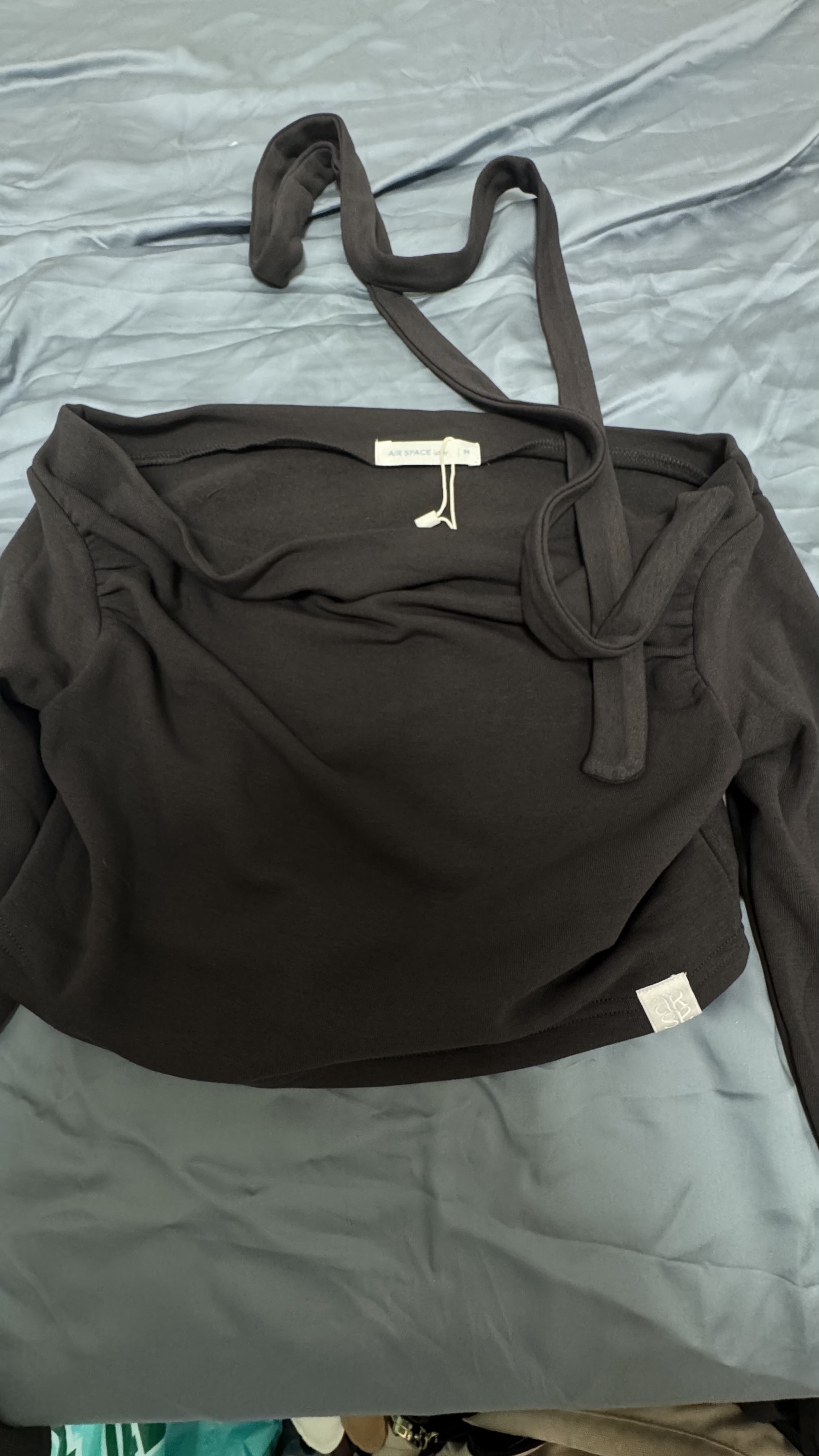 原本想買S但沒有了 還只剩下一件沒有全新的。。。有小汙點但覺得要再跑其他家很麻煩還是買了 希望可以常補貨 不然感覺不是拿全新的有點委屈 這件穿起來舒適沒有到很會往上跑 標籤確實會翻出來但應該剪掉就好了 最大的缺點就是沒有做胸墊希望可以多做有胸墊的