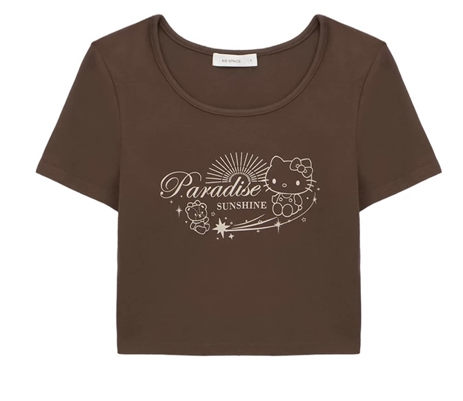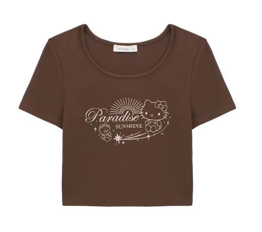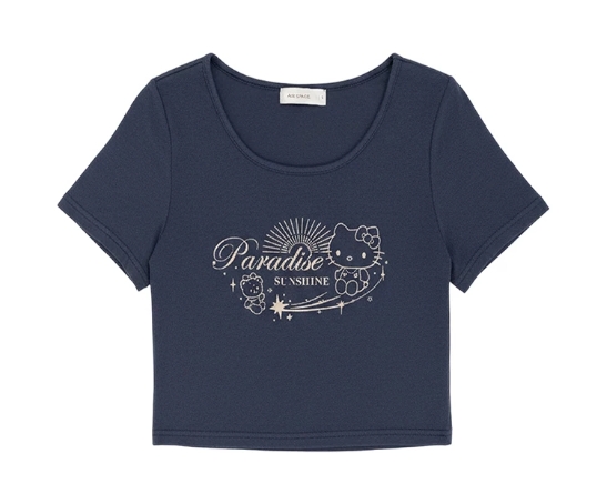 【Hello Kitty Collaboration】Fitted Scoop Neck Graphic Crop Tee