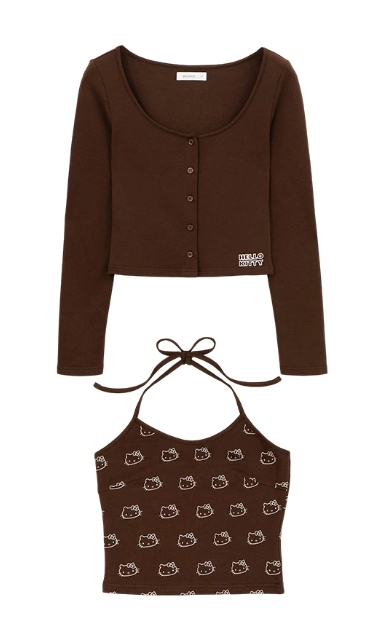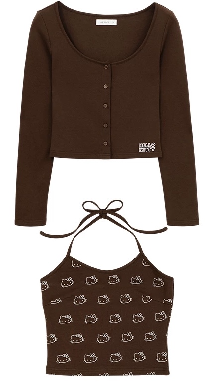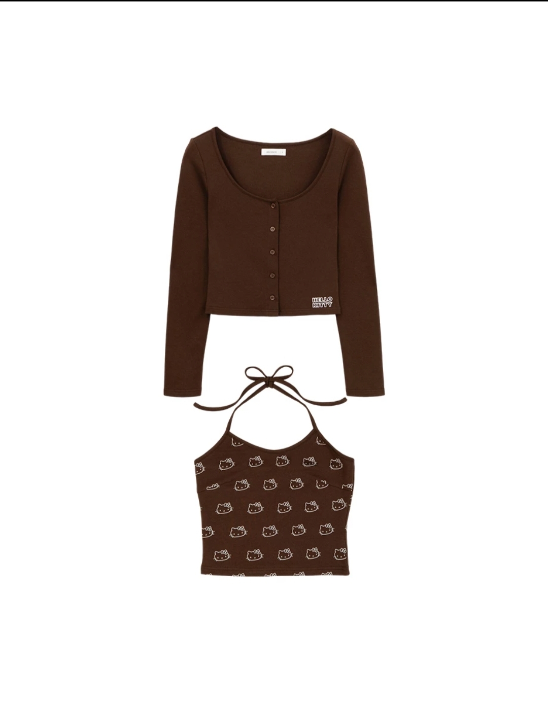 【Hello Kitty Collaboration】All Over Print Halter Camisole and Button Front Cardigan Set Wear