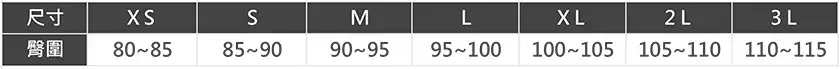 | 版型 | 貼身 | 1 | 2 | 3 | 4 | 5 | 寬鬆 |