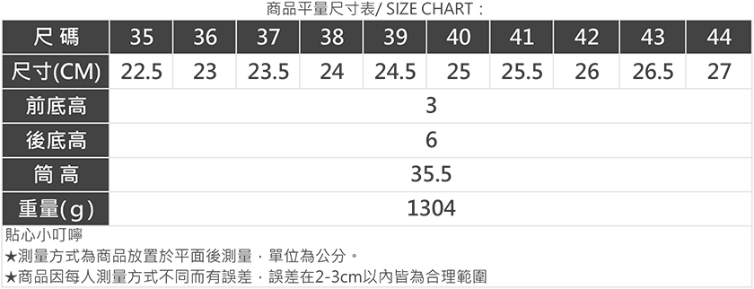 #36碼筒圍約36.5CM (靴筒一圈位置)