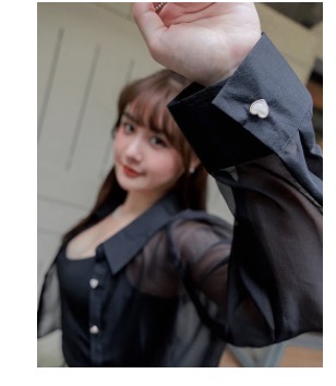 透膚愛心扣襯衫套裝(附胸墊)