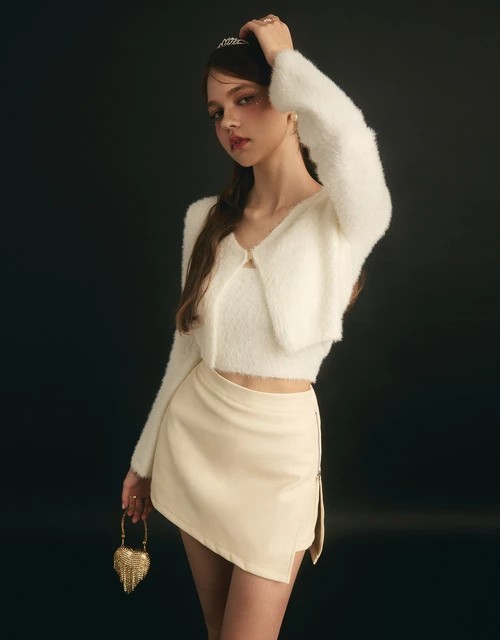 柔霧彈力皮質拉鍊褲裙