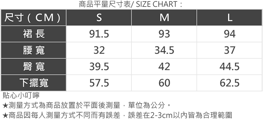 商品平量尺寸表