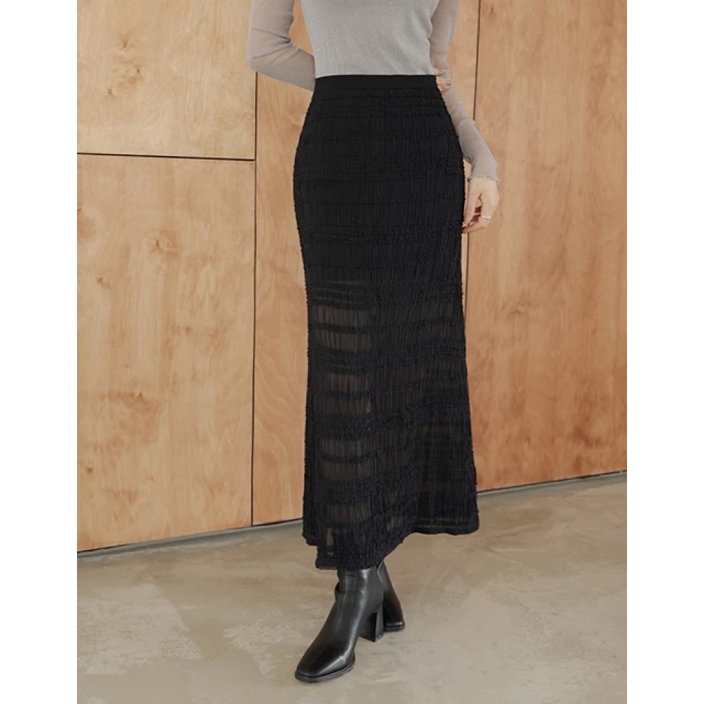 透肌立體荷葉開衩長裙