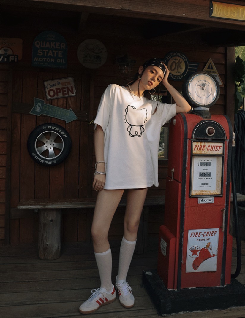 【Hello Kitty聯名】輪廓線圖案寬版TEE