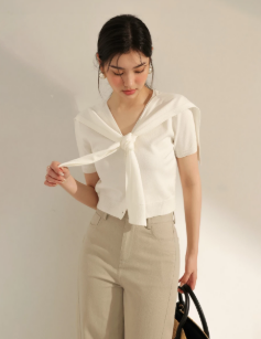 披肩綁結短袖針織上衣