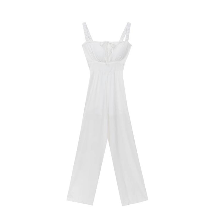 冰絲裸感抽皺肩帶高腰連身長褲(附胸墊)