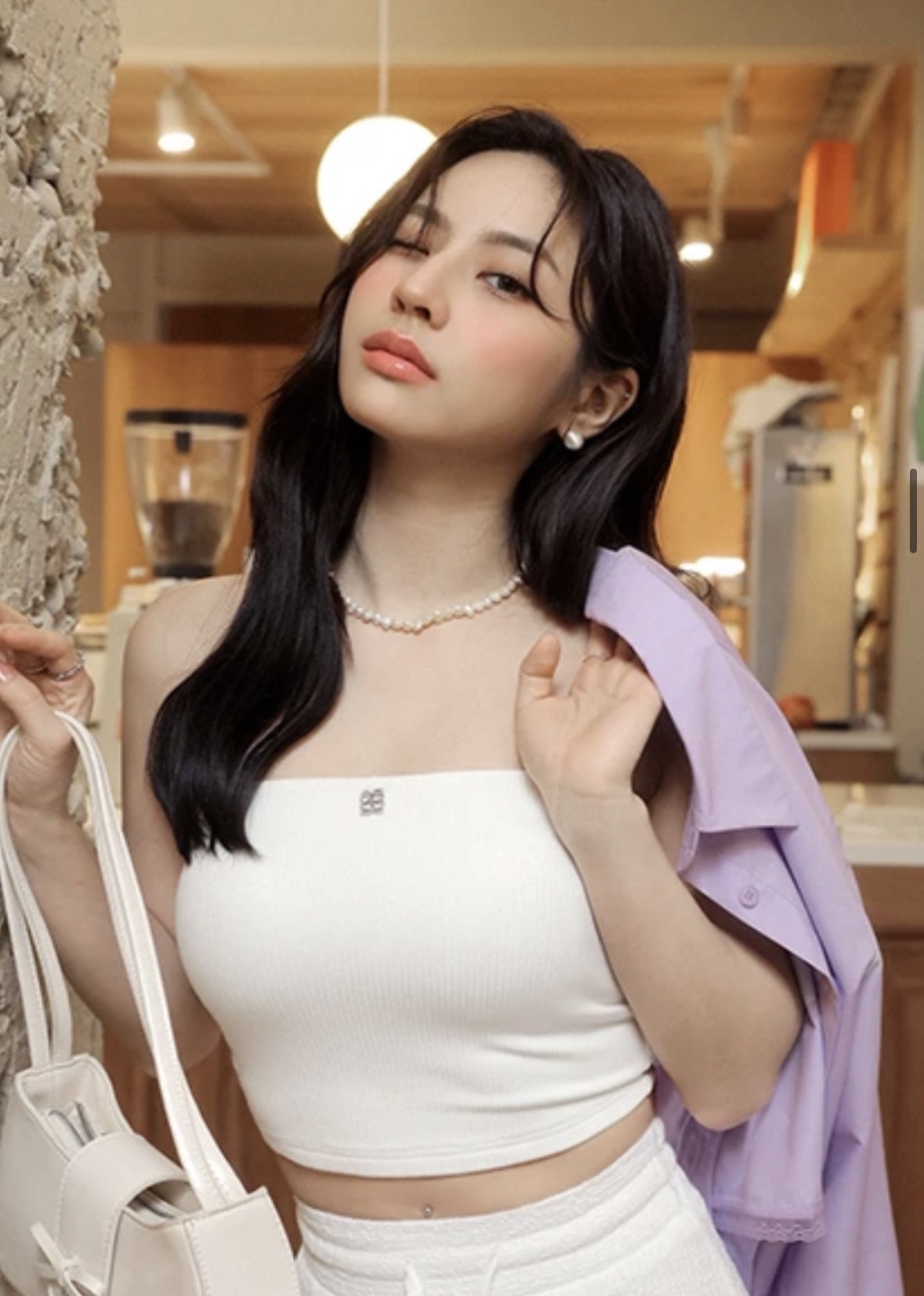 I love this black tube very much, it looks sexy and the little logo in the middle looks elegant. I had bought so many tubes and singlets from Airspace and this is one of my favorite piece. The only disadvantage is the string on top is too tight, if you are not so slim...it will squeeze your breast fats out on armpit.