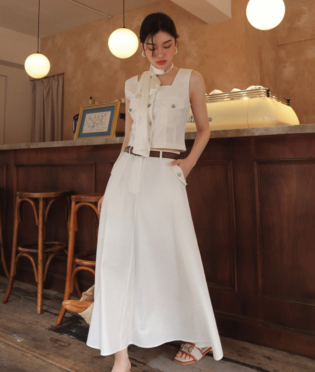 長裙穿起來很顯瘦,搭配背心一整套好好看
