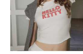 【三麗鷗聯名】刺繡字母木耳捲短版上衣