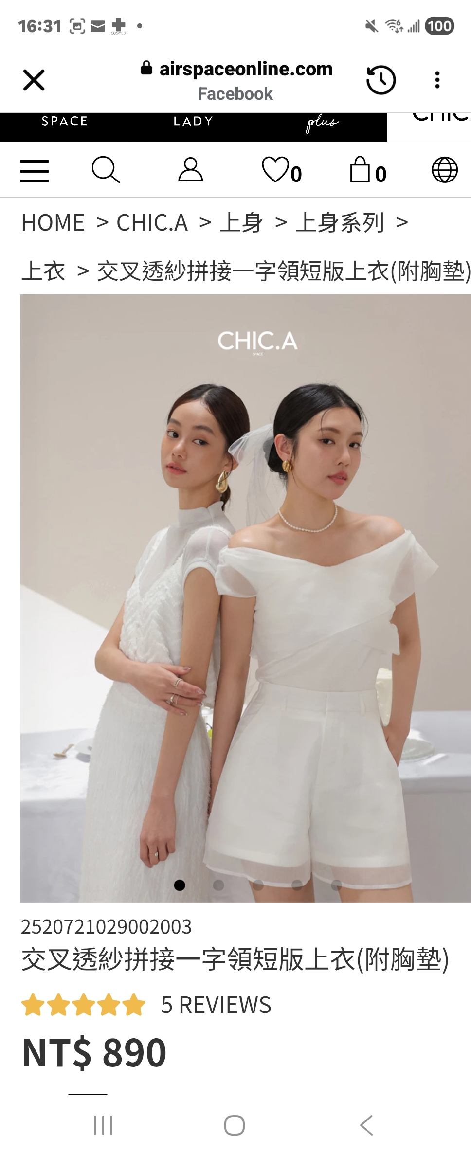 因為有胸墊所以超棒 有特色又好搭好看 但是chic a的尺寸都比較大平常買M這件應該要S 可惜S沒貨了