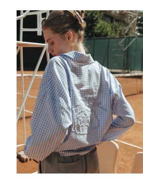 【Lyra & Toby】 美背刺繡格紋長袖襯衫