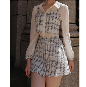 小香格紋側扣帶百摺短裙小香格紋側扣帶百摺短裙