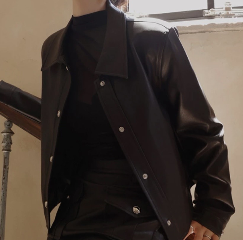 金屬排扣短版皮革外套(附墊肩)