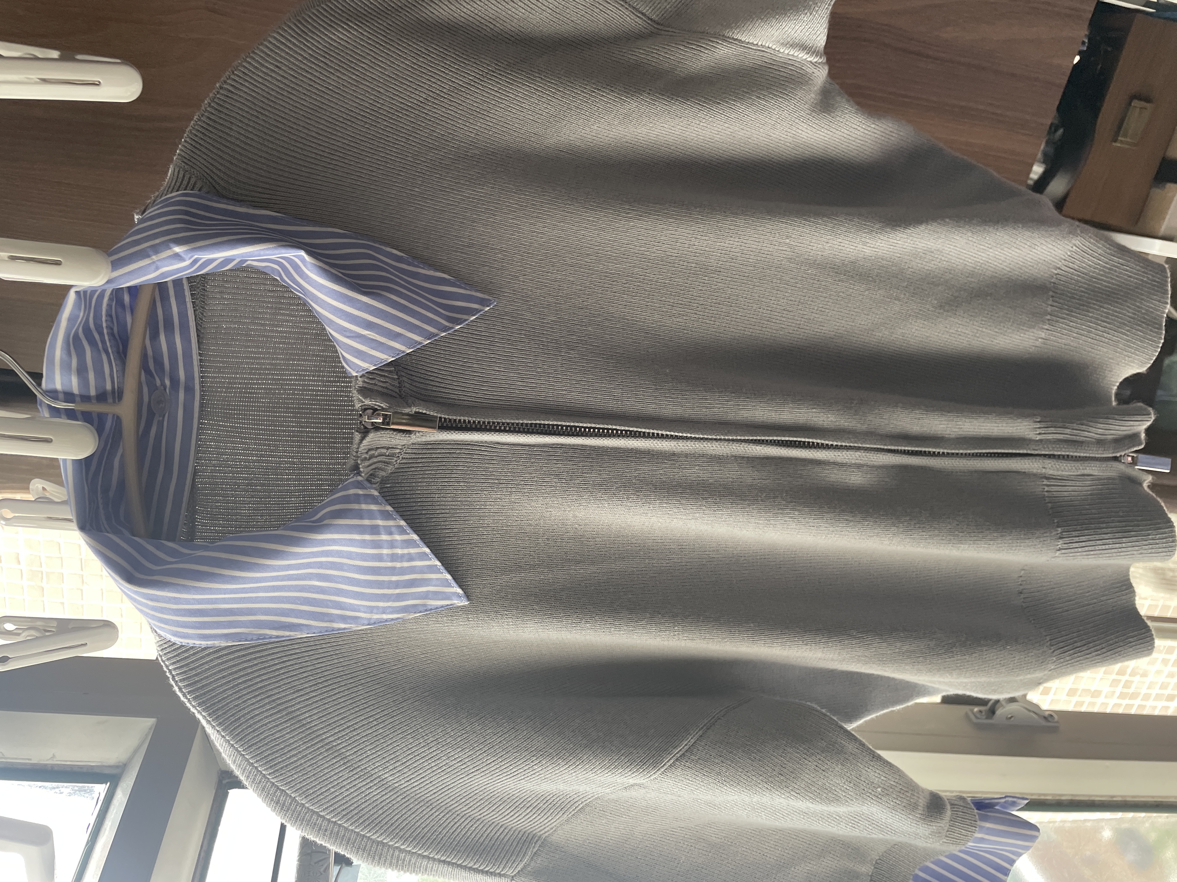 2WAY假兩件條紋翻領五分拼接袖拉鍊開襟針織衫2WAY假兩件條紋翻領五分拼接袖拉鍊開襟針織衫