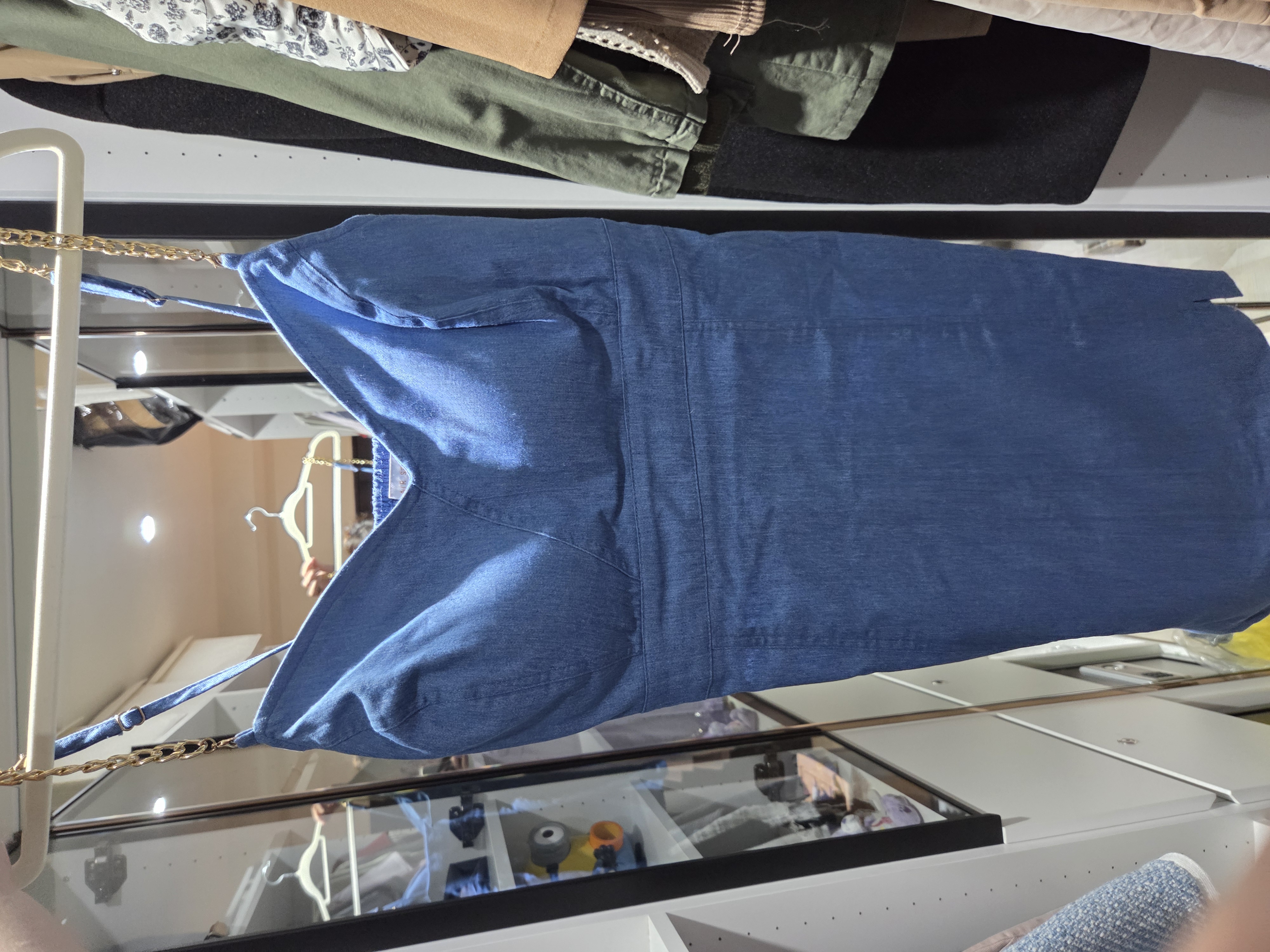 V領小開衩金鍊肩帶牛仔短洋裝(附胸墊)