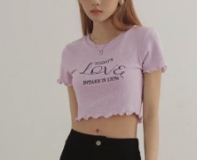 刺繡標語木耳邊短袖短版針織衫刺繡標語木耳邊短袖短版針織衫