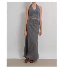 後翻蓋口袋LOGO刺繡魚尾西裝長裙