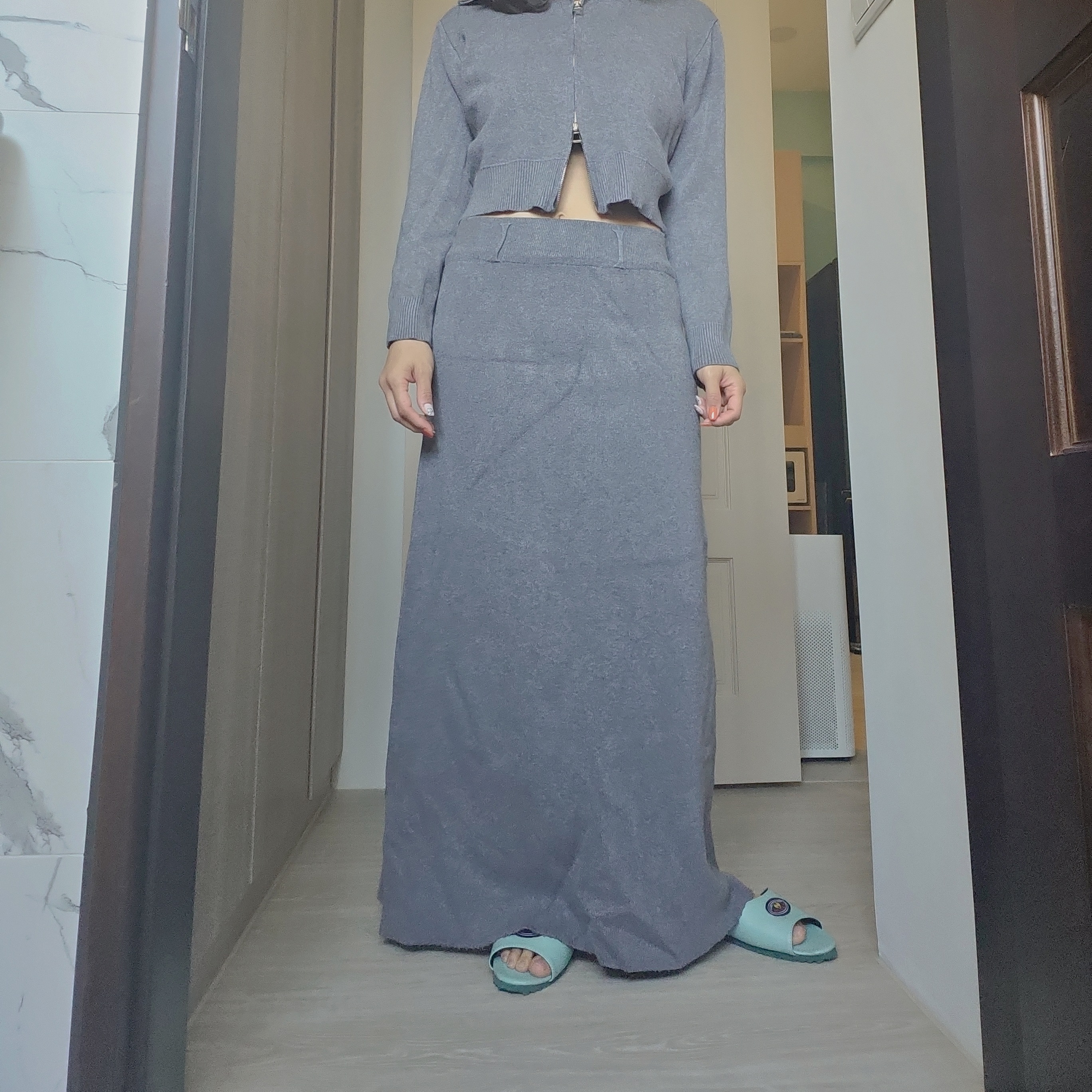 外套好舒服,拉鍊可上下開,多了一點性感風,而且重點很顯瘦