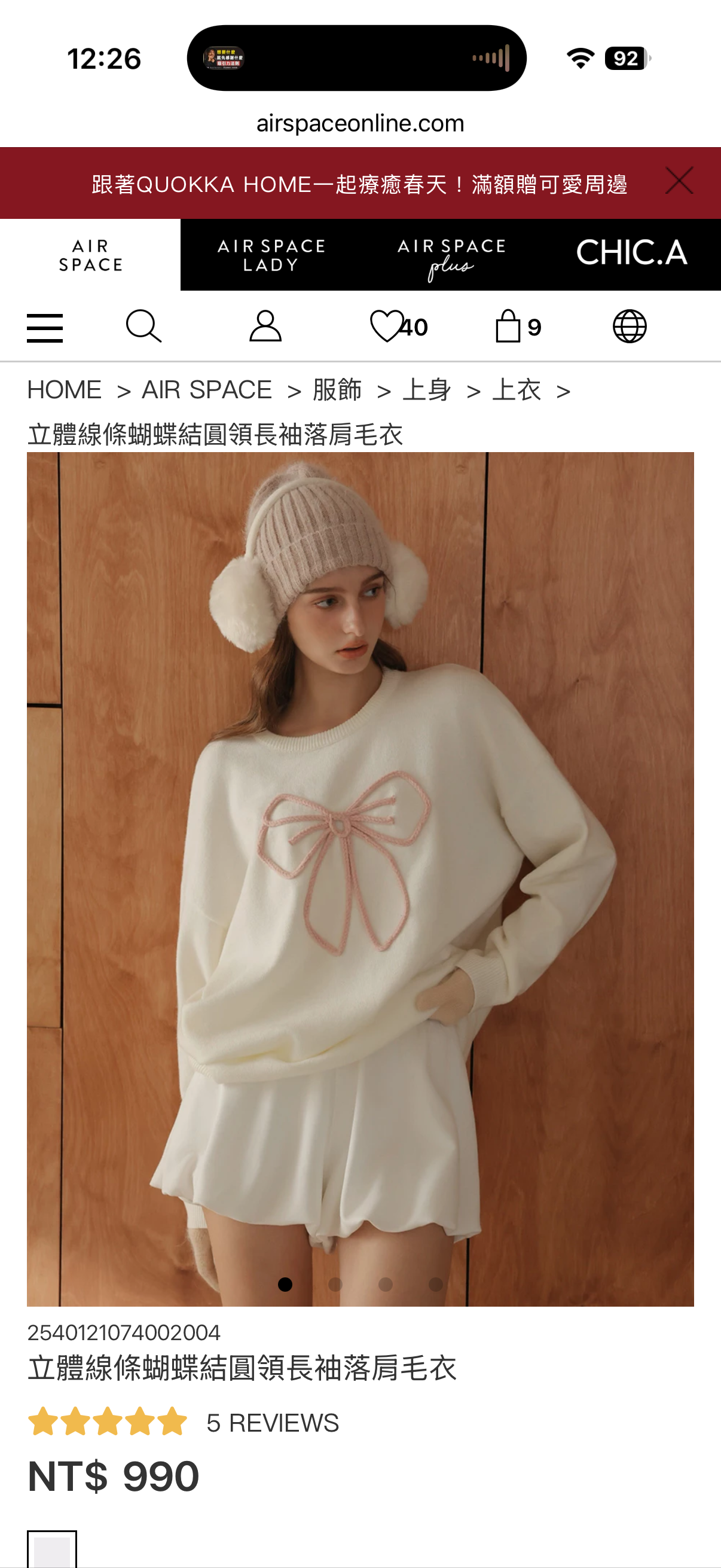 商品描述:立體線條蝴蝶結圖案/寬鬆版型