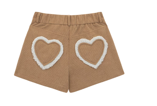 羊羔毛滾邊愛心貼布裝飾燈心絨短褲羊羔毛滾邊愛心貼布裝飾燈心絨短褲