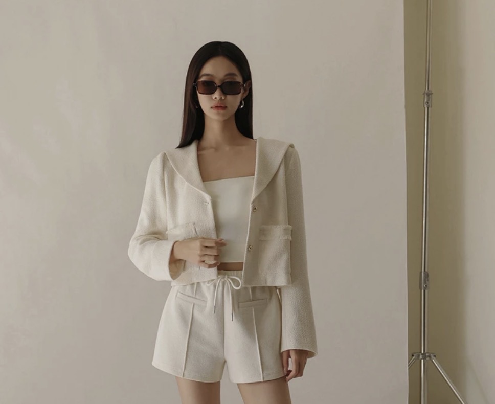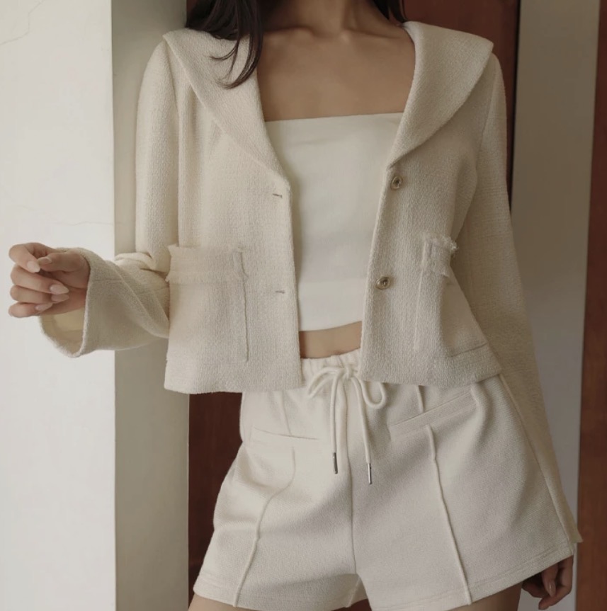 小香風織紋水手領金屬扣短版外套