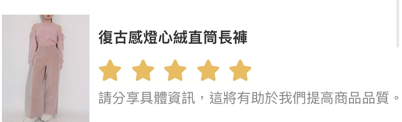 | 觸感 | 親膚 | 1 | 2 | 3 | 4 | 5 | 硬挺 |