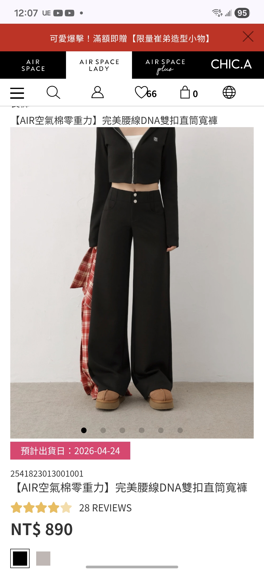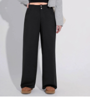 空氣層面料的特色為親膚、Q彈、透氣,立體結構織法不易皺,具有絕佳舒適穿著感。雙扣設計拉長比例,直筒寬褲修飾腿型不顯胯,營造纖腰長腿效果。