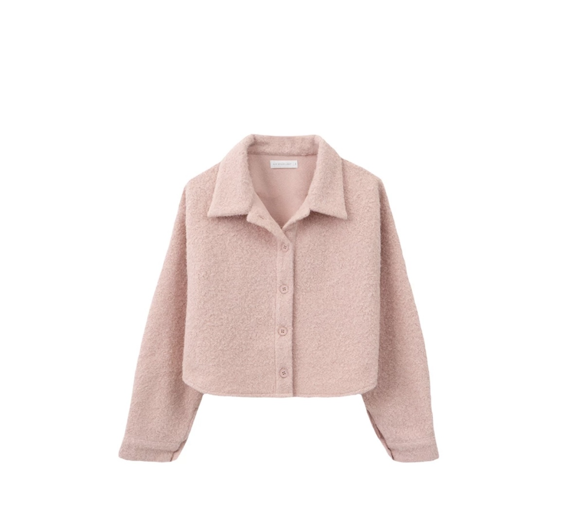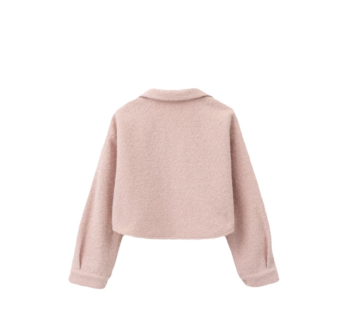 翻領排扣毛呢短版外套,材質厚實有挺度。寬鬆的短版剪裁提升整體身形比例,正式或休閒場合皆適穿。