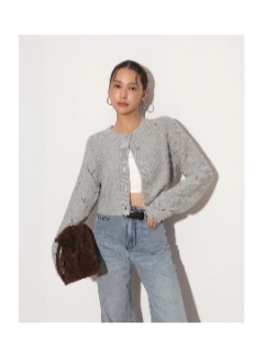 圓領鏤空菱格袖短版開襟針織衫圓領鏤空菱格袖短版開襟針織衫
