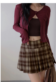 側開衩百褶短褲裙(格紋/素色)側開衩百褶短褲裙(格紋/素色)