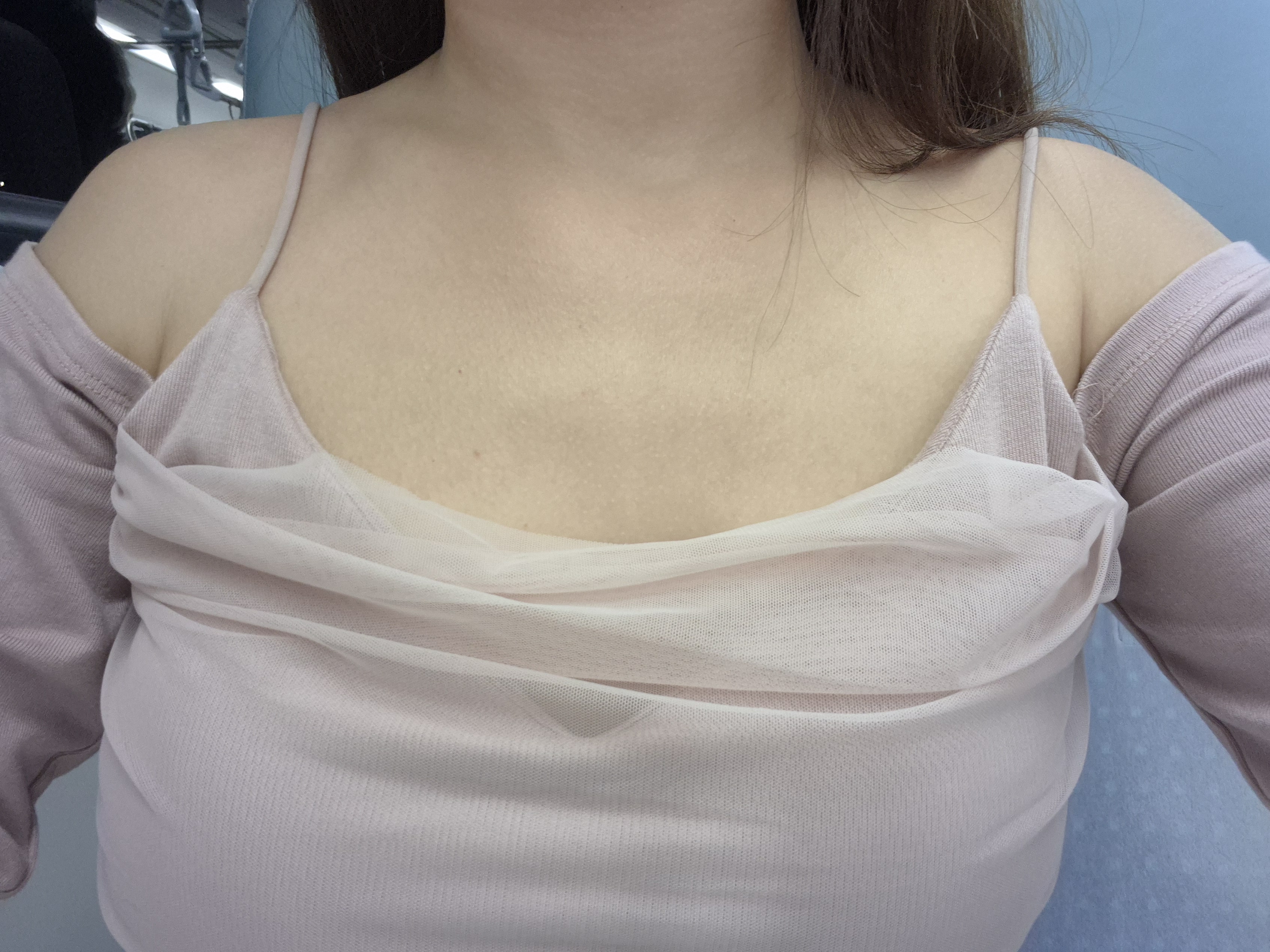 平常有胸墊的我買M 試穿的時候感覺很舒服但怎麼好像有點鬆還是買了 結果發現這件腰是剛好的但胸圍偏大 胸不夠大的話買S才不會很鬆TT會比較合身好看