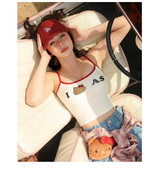 撞色滾邊加上烤焦版Kitty結合經典字母印花,充滿美式復古氛圍。附胸墊的貼心設計不須煩惱內著搭配問題。短版合身剪裁能強調腰線並優化身形比例,展現俐落俏皮的氣場。