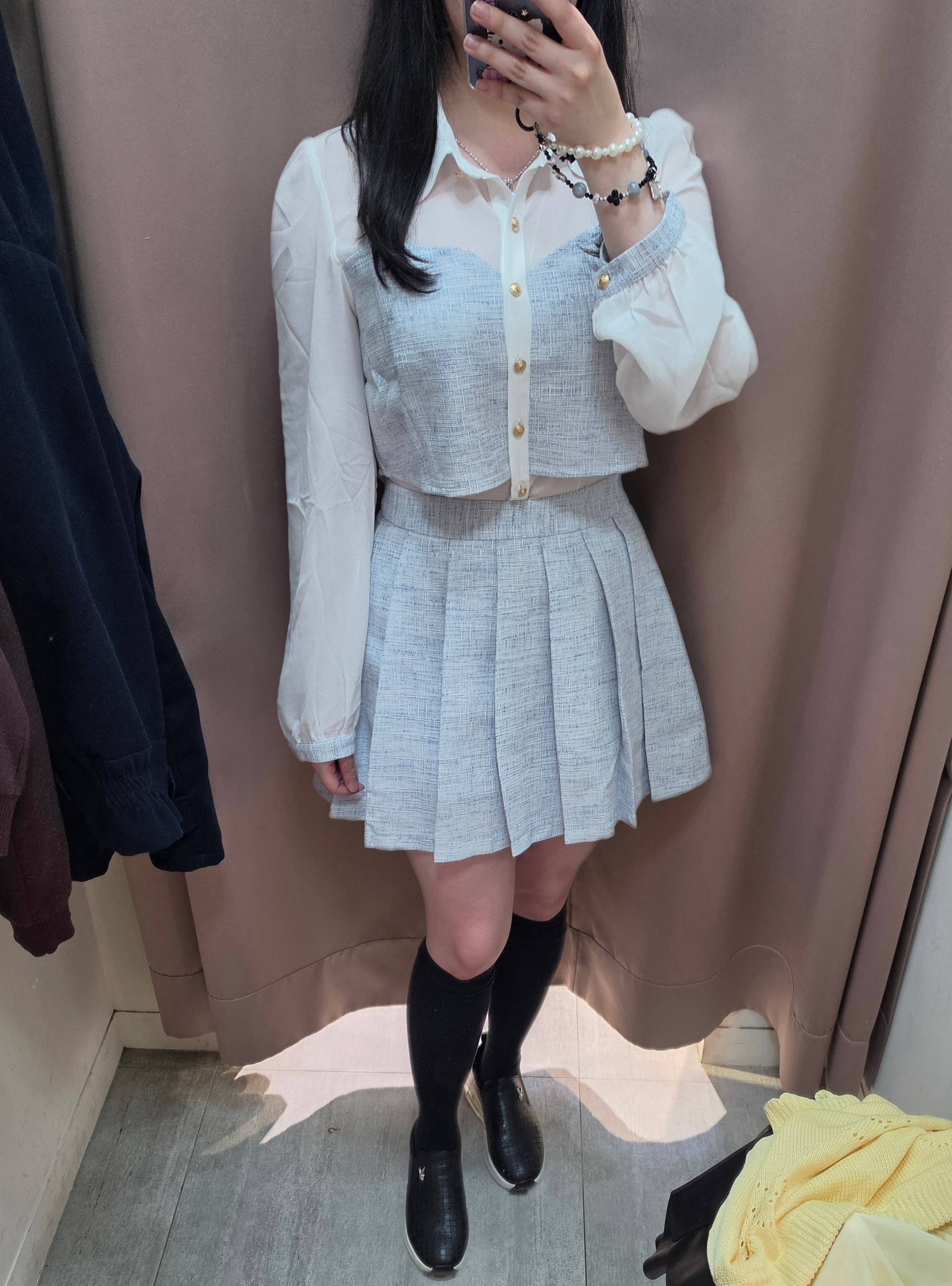 小香風織紋百褶短裙
