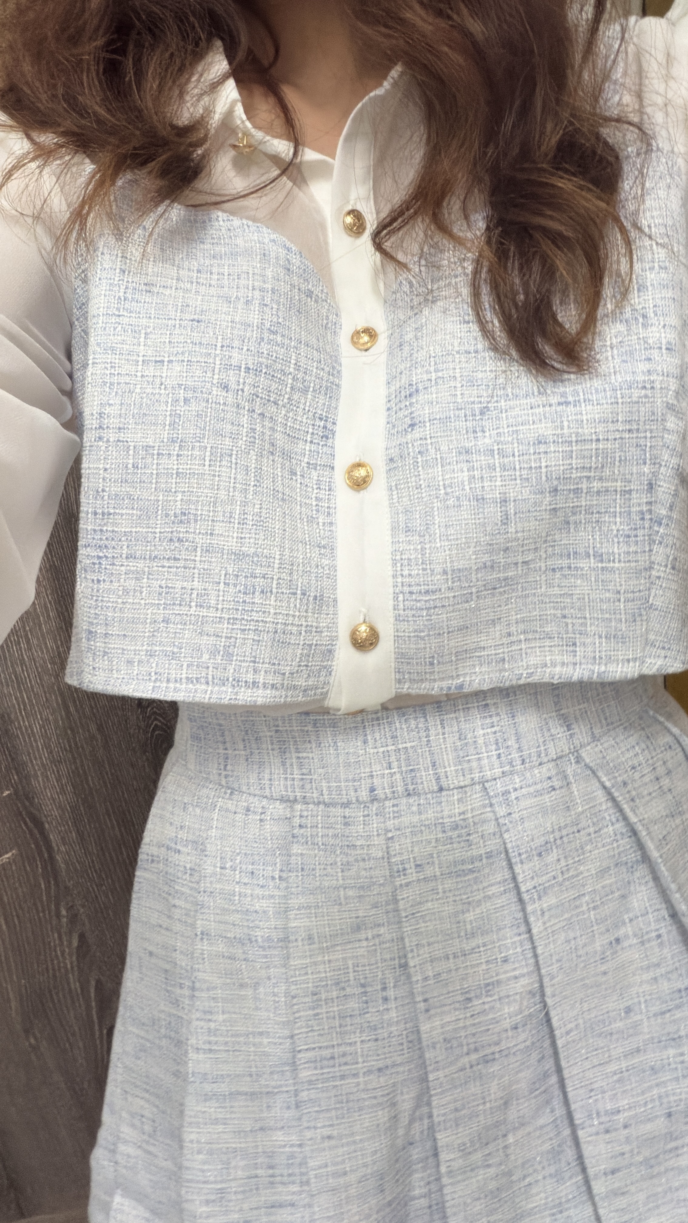 小香風織紋百褶短裙