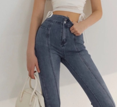 雙扣高腰修身前車線褲管開衩小喇叭牛仔褲雙扣高腰修身前車線褲管開衩小喇叭牛仔褲