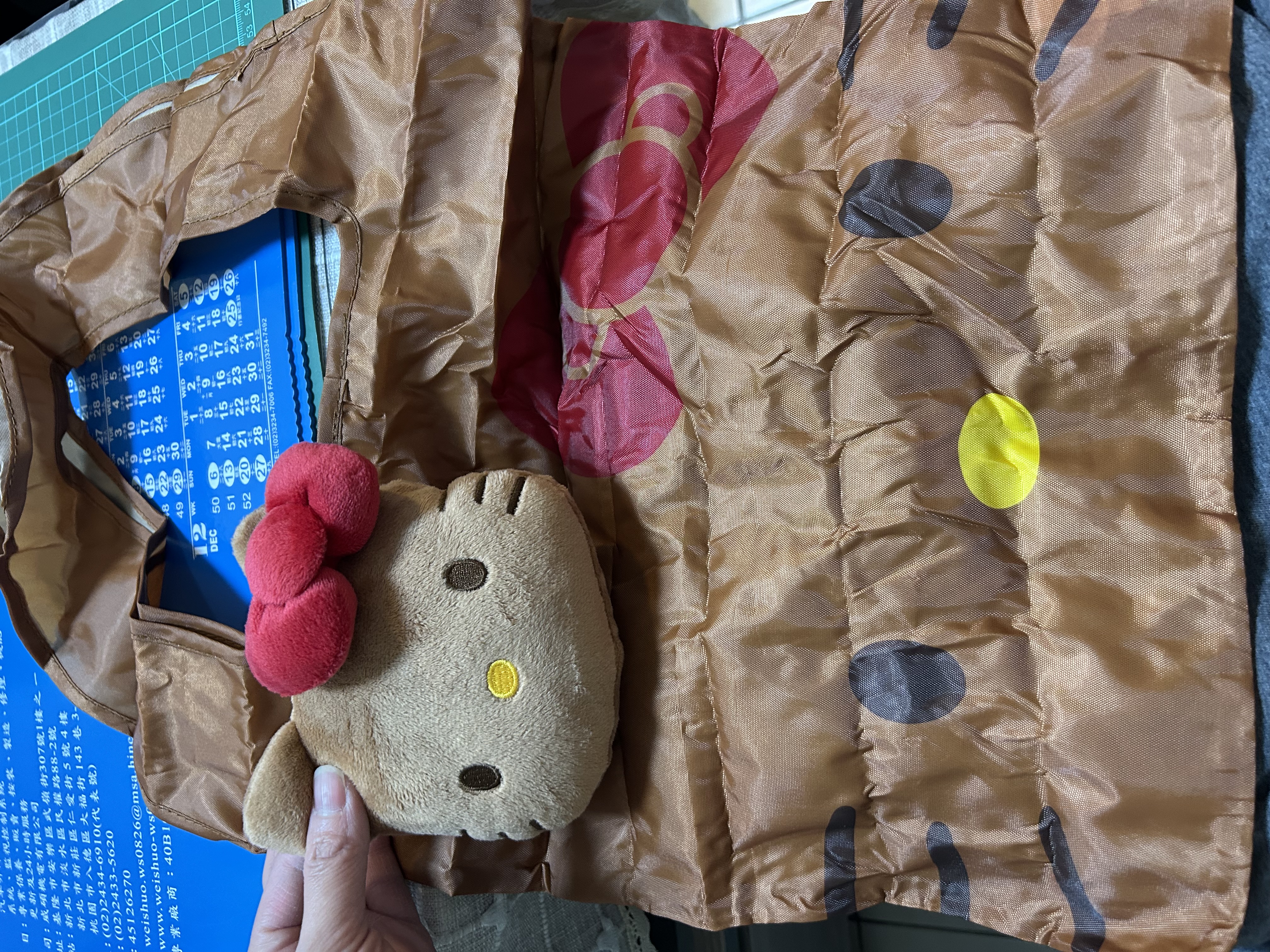 超級實用的購物袋,扣環材質也很好,烤焦KITTY蓬蓬的像麵包一樣可愛