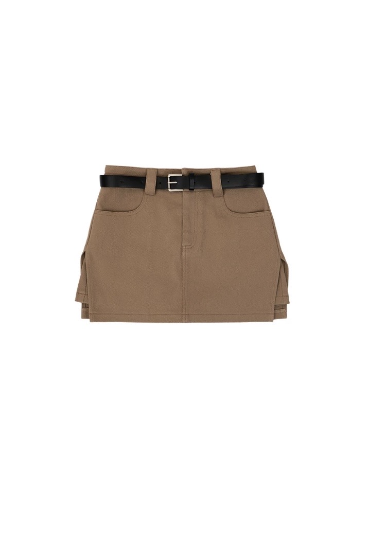【HEYMAN聯名】側拼接開衩斜紋短褲裙(附皮帶)