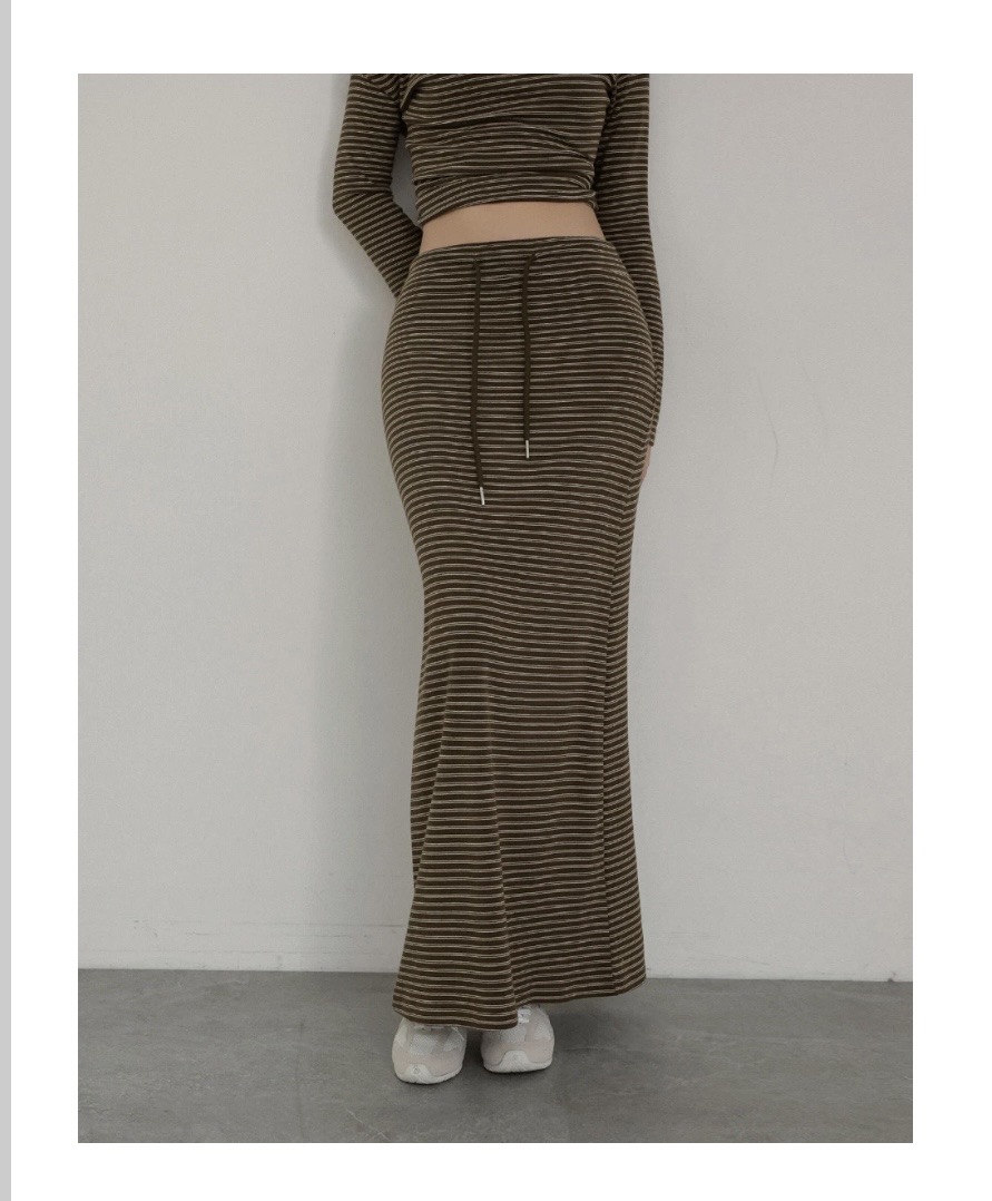 直筒及踝的裙長自然延伸下半身的線條,即使是橫條紋也能穿出修長且顯瘦的身形。腰頭採用靈活的抽繩設計,可自由調整鬆緊,除了舒適不勒腰腹,也為裙裝增添時髦的休閒氣息。