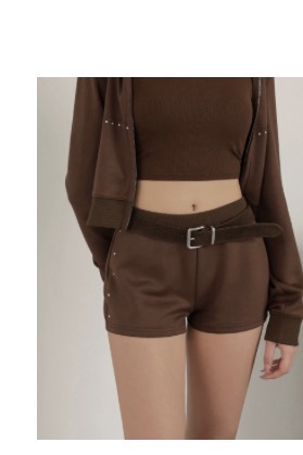 鉚釘裝飾低腰鬆緊休閒短褲