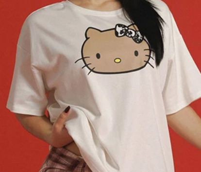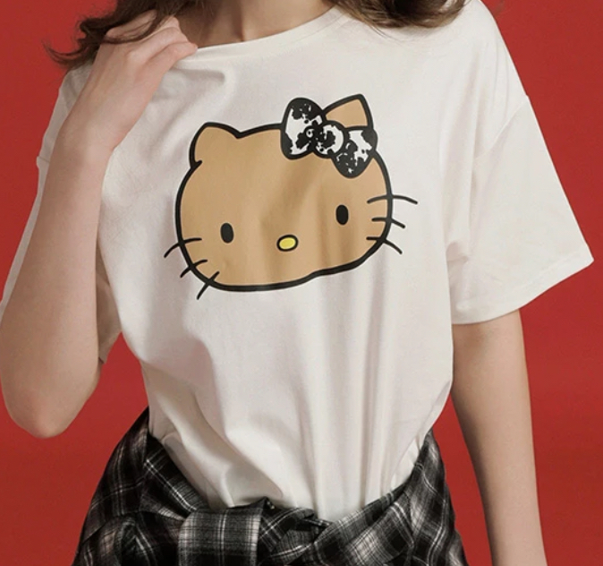【Hello Kitty聯名】烤焦版凱蒂貓印花圓領短袖寬版TEE