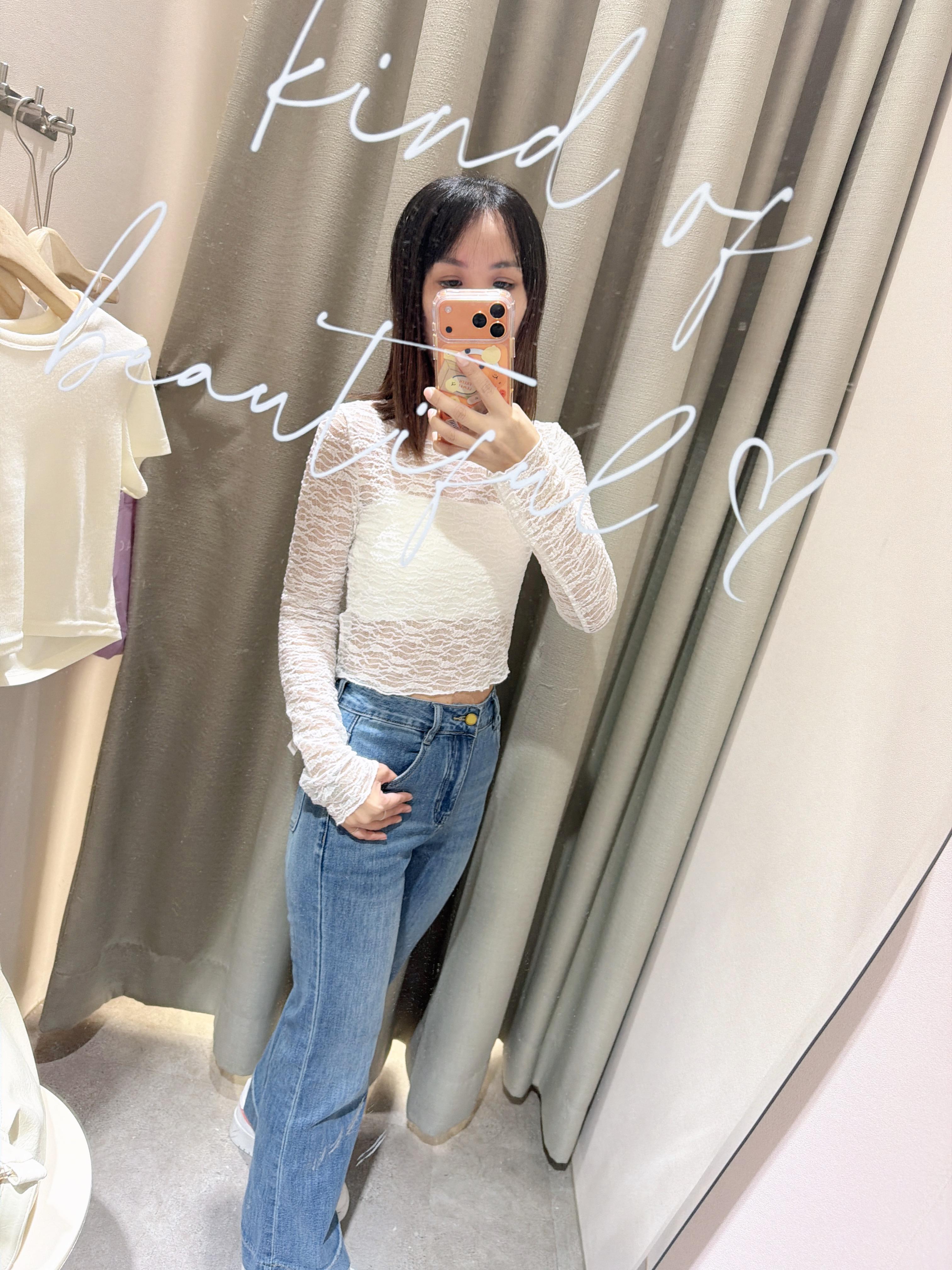 質感很好,蕾絲透膚又舒適,短版上衣擺搭讚讚!