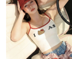 好穿尺媽剛剛好 撞色滾邊印花字母細肩帶短版背心(附胸墊)