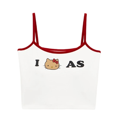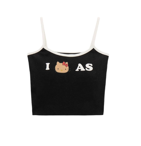 【Hello Kitty聯名】撞色滾邊印花字母細肩帶短版背心(附胸墊)