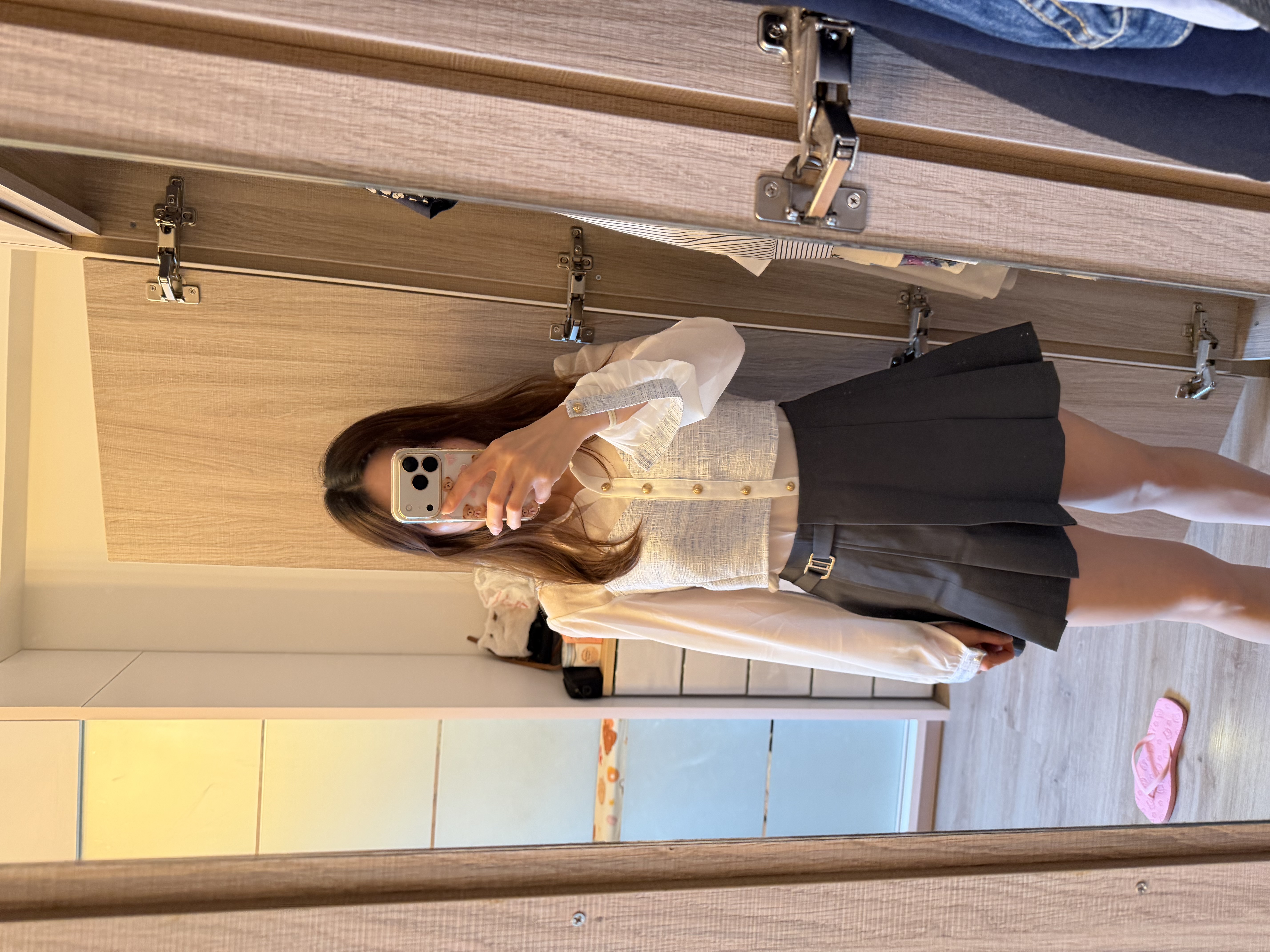 模特兒高挑 整體都比較修長 一般平均160上下的女生穿 除非腰真的很長 否則中間基本上露出白色的部分不會那麼多喔! 還是好看 值得購買😊
