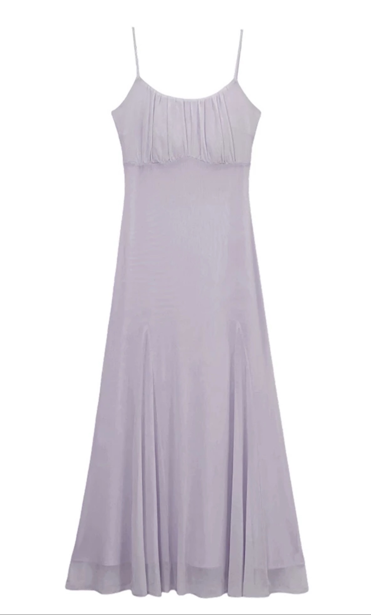 這款長洋裝結合馬甲式塑腰與平口抓皺,視覺上豐盈胸型並收束腰線,強化身形曲線。內附一體式胸墊,省去另外搭配內著的煩惱。是一款優雅與性感並存的女神級洋裝。