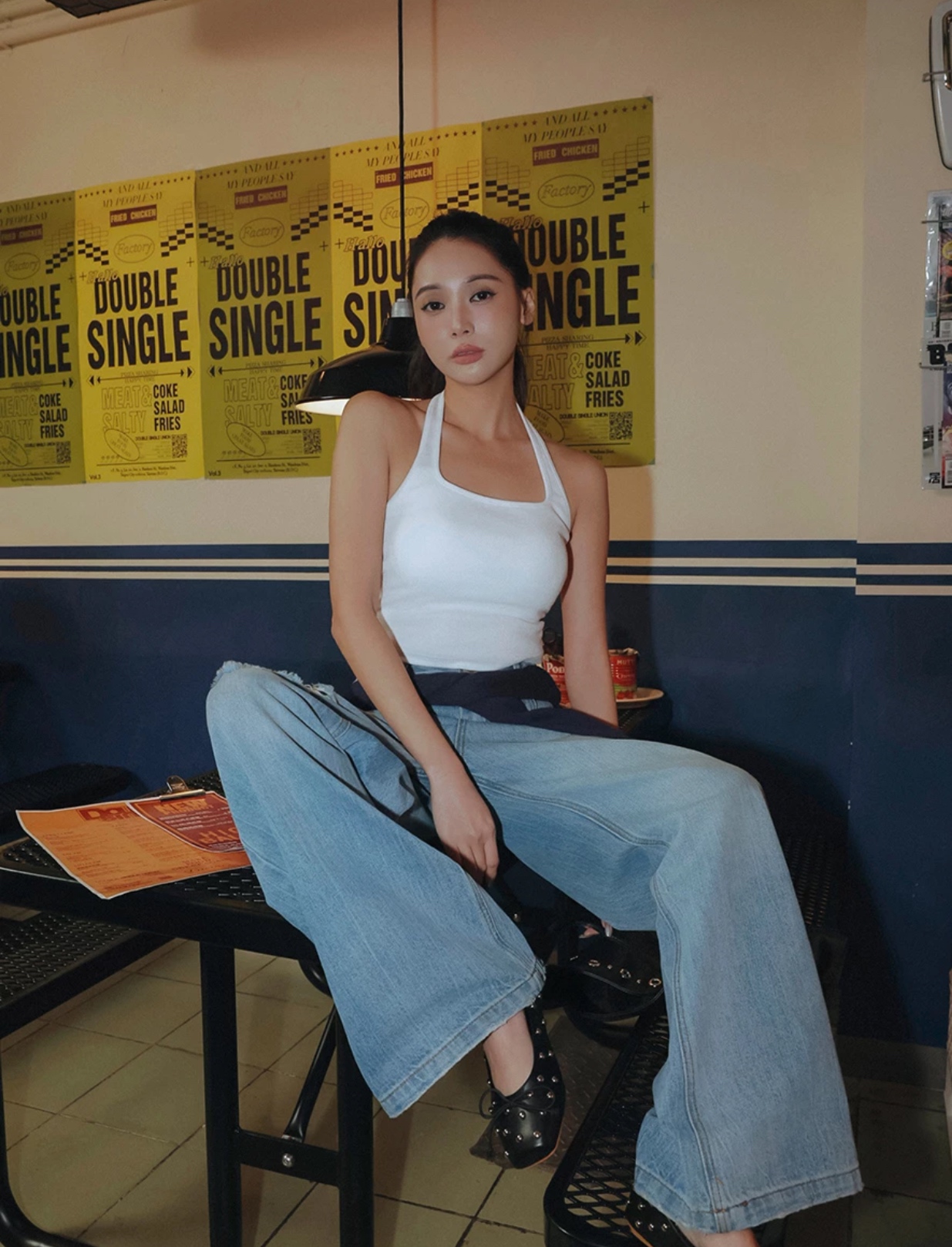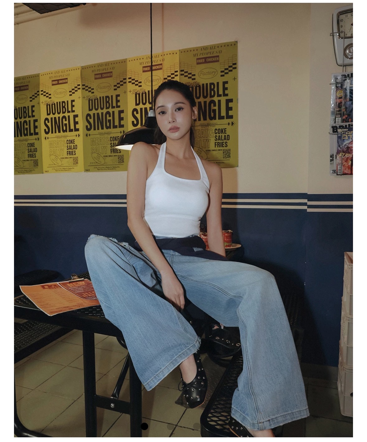 繞頸肩帶搭配方領,有效延伸頸部與肩線,並且讓露出的上背部看起來清爽俐落。內附一體式胸墊,無需擔心尷尬的內衣痕跡,同時也兼具美化胸型的效果,是一款單穿或內搭皆適合的必備BRA TOP。