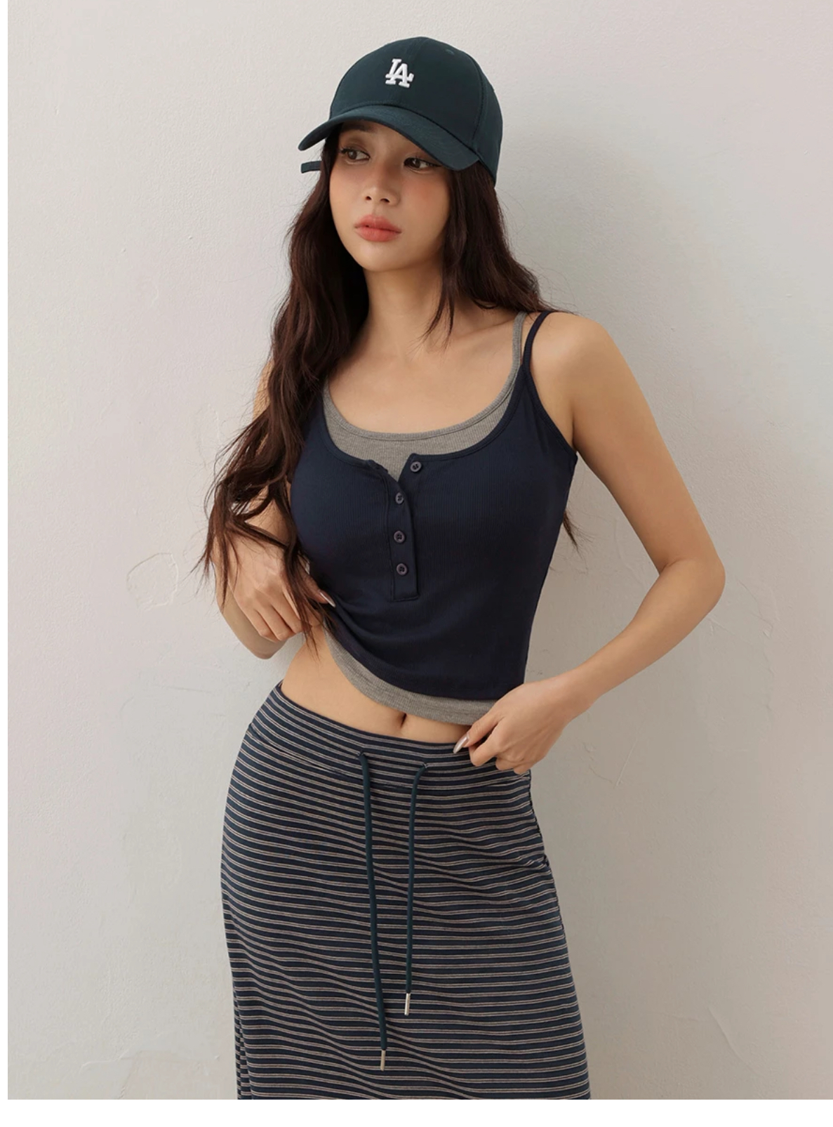 假兩件U領排扣半開襟細肩帶 BRA背心